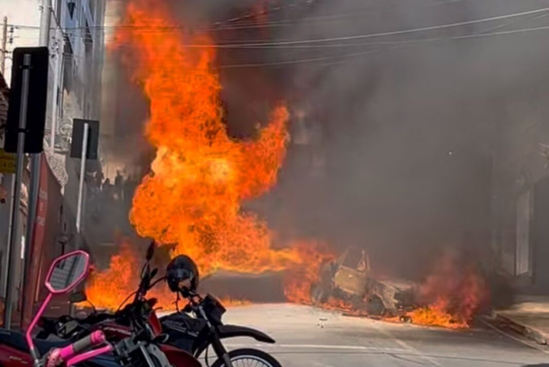 Atualização: Saveiro pega fogo no centro de Itaúna
