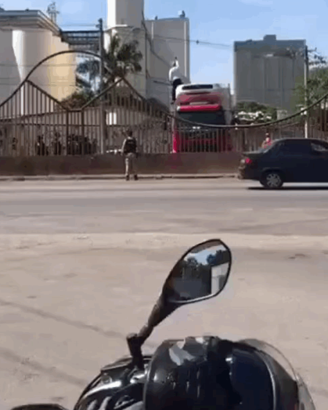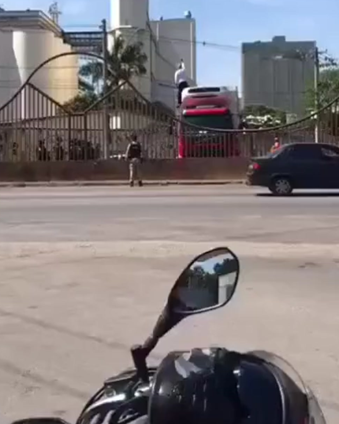 Segundo testemunhas, o motorista apresentava sinais de surto. Após negociação com autoridades e pessoas presentes, ele desceu voluntariamente do veículo, evitando que a situação se agravasse.