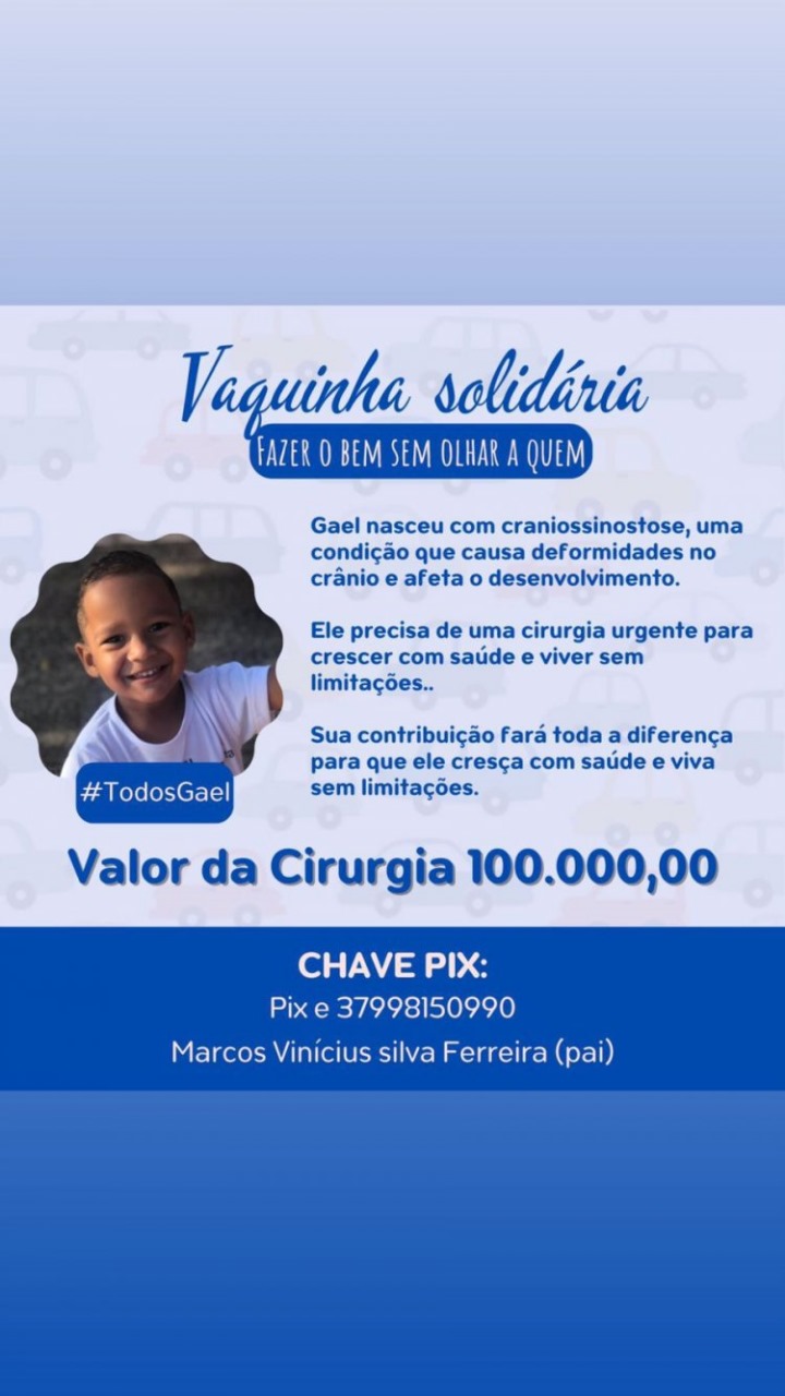 O caso de Gael mostra como a união pode transformar uma realidade. A cada doação, por menor que seja, a família se aproxima da possibilidade de garantir ao garoto um futuro com saúde e sem limitações. Quem quiser colaborar pode contribuir diretamente via Pix: 37998150990 (Marcos Vinícius Silva Ferreira).