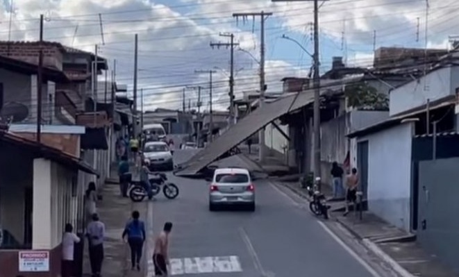 Cobertura metálica desaba em residência de Itaúna e interdita rua no Morada Nova