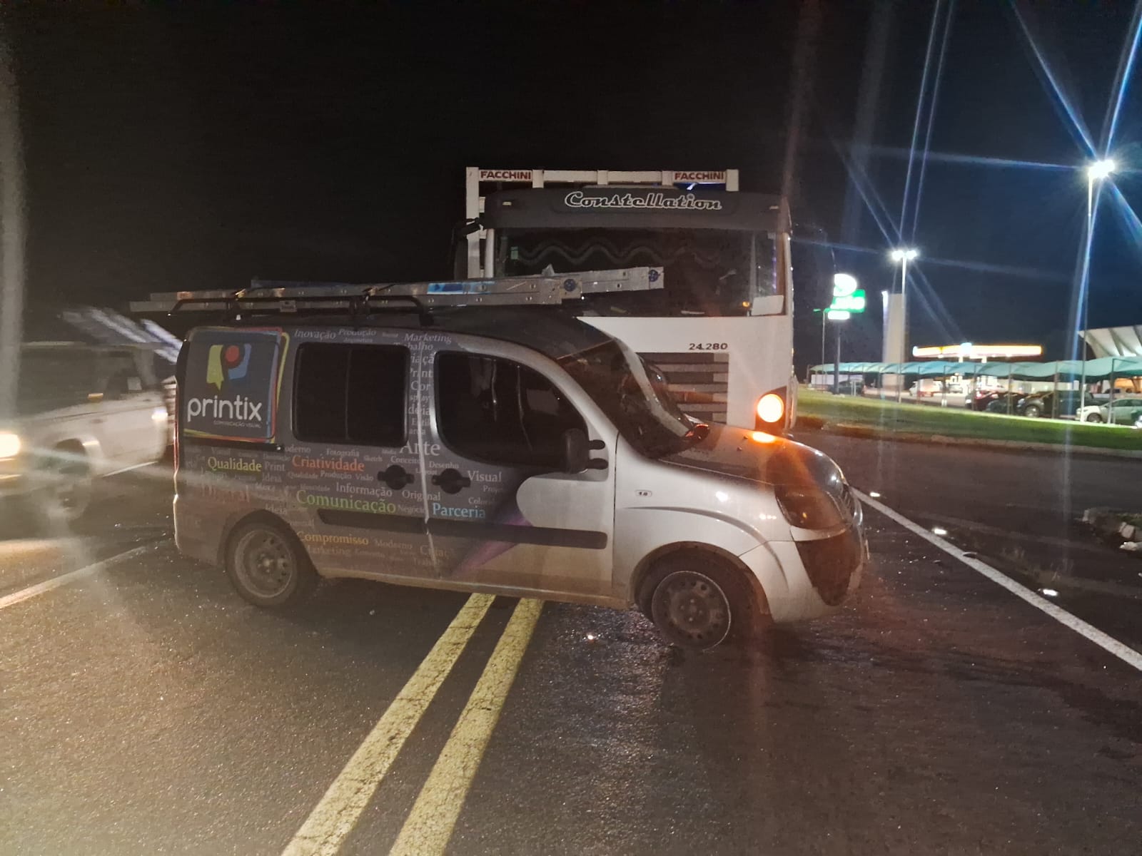 De acordo com informações da Polícia Militar Rodoviária de Minas Gerais, o condutor de um Fiat/Doblô, de 35 anos, aguardava no acostamento para acessar o Restaurante Milhão quando iniciou conversão à esquerda sem as devidas cautelas, interceptando a trajetória de um caminhão VW/24.280, conduzido por um homem de 52 anos, que trafegava regularmente pela rodovia.
