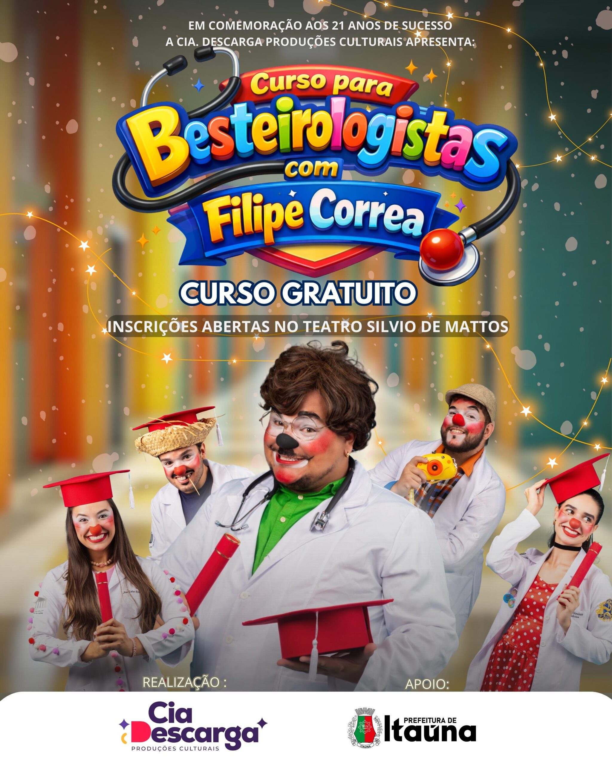 A arte e a formação cultural ganham destaque em Itaúna com uma iniciativa da Companhia Descarga Produções Culturais, que comemora 21 anos de atuação oferecendo duas oportunidades gratuitas de aprendizado artístico no Teatro Sílvio de Matos. As atividades são voltadas para jovens e adultos interessados em explorar o universo do teatro e da palhaçaria.