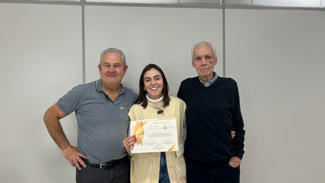 Durante a visita, a deputada recebeu dos provedores do hospital, Antônio Guerra e Francisco Mourão, um certificado em agradecimento pelo envio das emendas e pelo trabalho em prol da saúde de Itaúna e região.