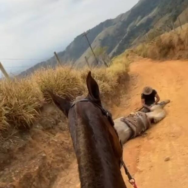 Mas a realidade que se espalhou pelas redes sociais está distante da poesia. Um homem, identificado como “Boiadeiro”, monta um cavalo exausto. Depois de percorrer mais de quatorze quilômetros, o animal cai, incapaz de continuar, e sofre um ato de crueldade inimaginável.