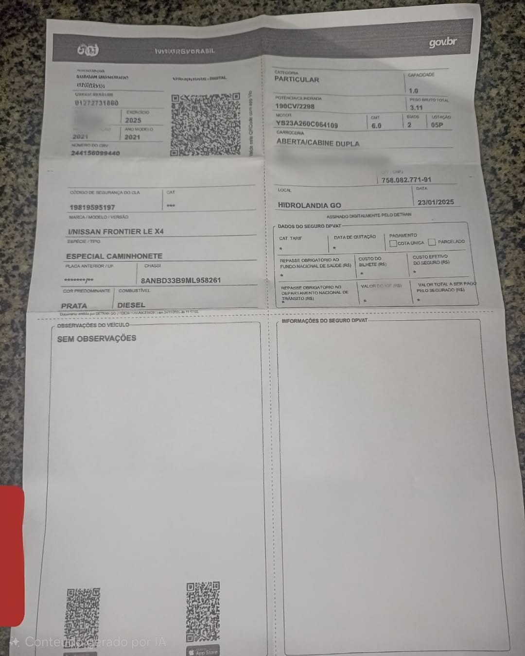 O motorista conduzia uma caminhonete Nissan Frontier quando foi abordado pelos policiais. Durante a verificação dos dados do veículo, foram identificadas divergências entre as informações apresentadas pelo condutor e aquelas registradas nos sistemas oficiais.