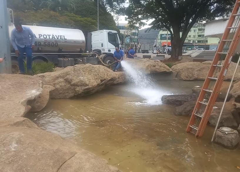 Na manhã de ontem, 29, equipes da Prefeitura e do SAAE realizaram um teste na tubulação da fonte. Logo no início, o sistema expeliu grande quantidade de sujeira acumulada ao longo de 14 anos sem uso. Em seguida, dois caminhões-pipa despejaram água na estrutura para continuidade dos trabalhos, mas o procedimento resultou em um retorno inesperado do líquido, que acabou inundando a casa de bombas localizada no subsolo.