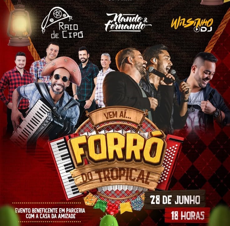 O clima junino já toma conta de Itaúna e, no dia 28, a cidade terá um dos eventos mais animados do mês: o Forró do Tropical, que promete reunir música boa, alegria e solidariedade em uma grande festa no Tropical Tênis Clube. A programação começa a partir das 18h e reúne grandes atrações que vão garantir uma noite inesquecível para o público de todas as idades.