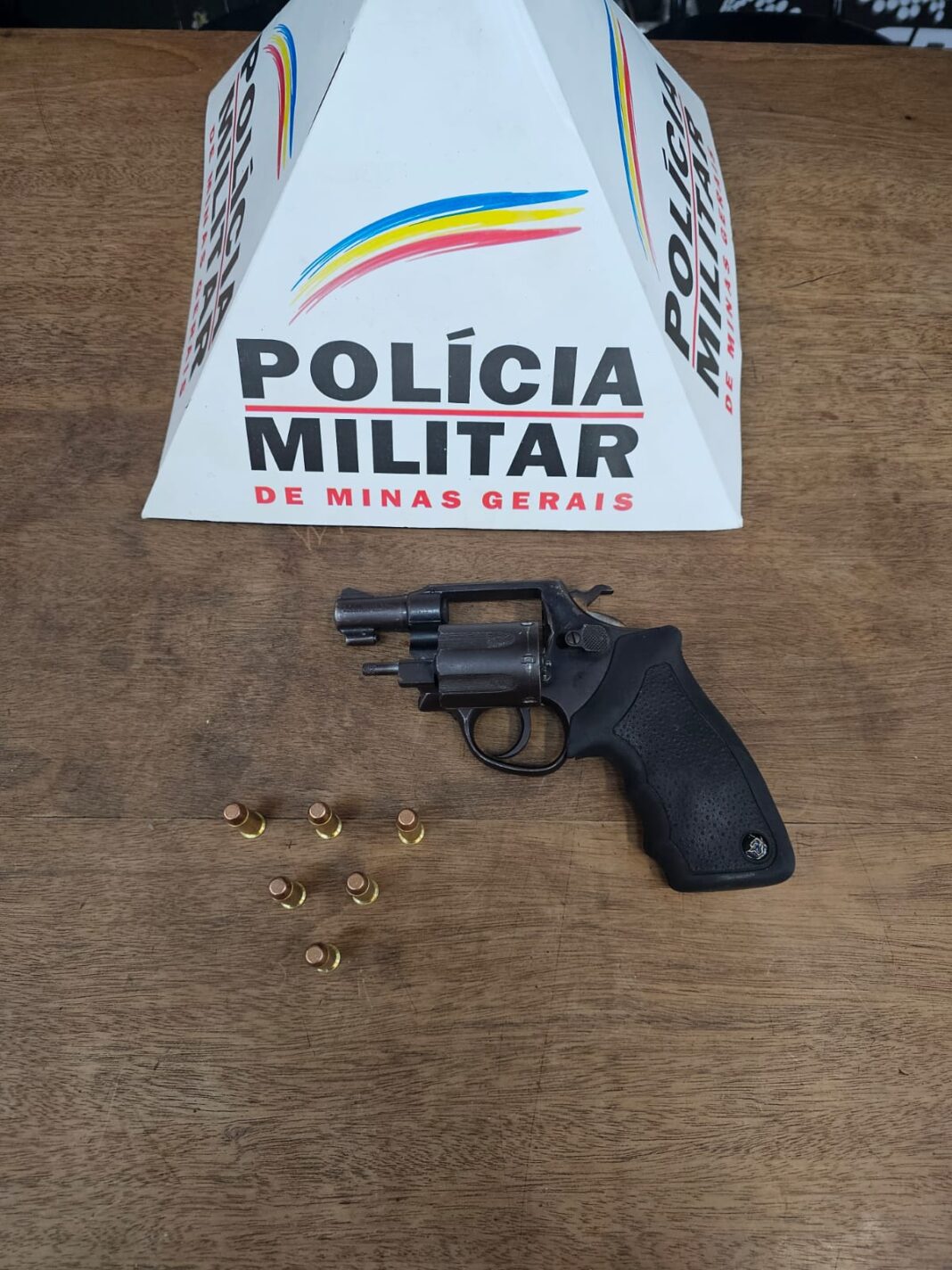 Durante a abordagem, os policiais localizaram o automóvel e encontraram um revólver calibre .38 com seis munições, que foram apreendidos. O suspeito confessou que a arma havia sido adquirida para ameaçar a vítima, sendo a motivação passional.