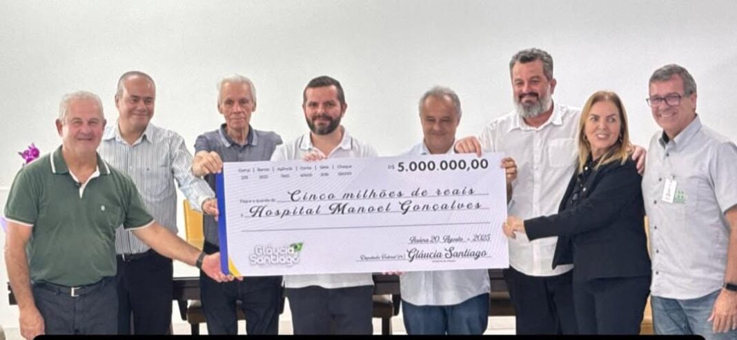 O Hospital Manoel Gonçalves promoveu a cerimônia simbólica de entrega de um cheque no valor de R$ 5 milhões, referentes à emenda parlamentar enviada pela atual secretária municipal de Desenvolvimento Social, Gláucia Santiago, durante o período em que ocupou mandato na Câmara Federal.