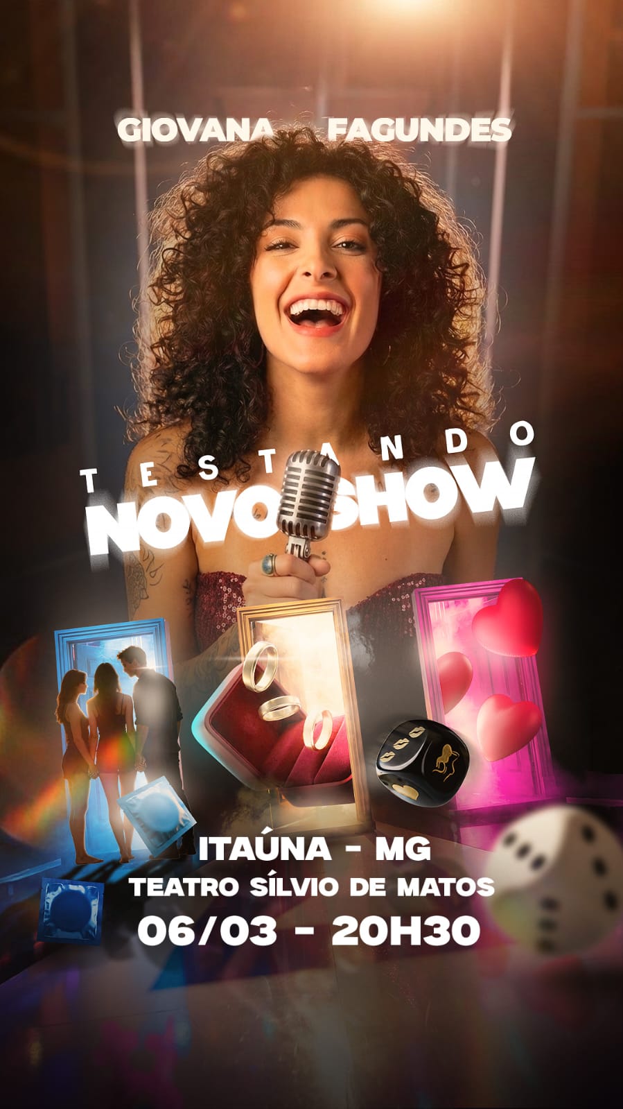 A comediante Giovana Fagundes chega a Itaúna com seu novo espetáculo de Stand Up Comedy, marcando a estreia do solo inédito que promete provocar risadas, reflexões e muita interação com o público. A apresentação acontece no dia 6 de março, às 20h30, no Teatro Sílvio de Mattos.