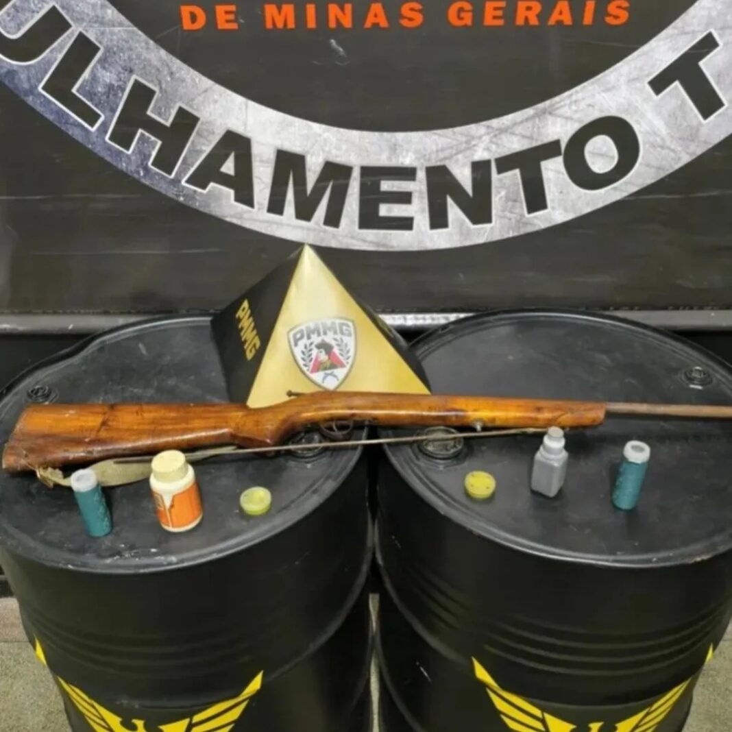 De acordo com a vítima, o suspeito teria feito ameaças graves, o que motivou a ação policial. Durante as buscas na residência do jovem, os militares localizaram uma espingarda, além de materiais utilizados para a recarga da arma.