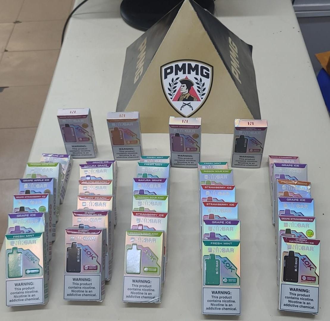 Durante a abordagem, os militares perceberam que o suspeito transportava um pacote envolto em fita adesiva, o que levantou suspeitas quanto ao conteúdo. Ao realizarem a verificação, foram encontradas 34 unidades de cigarros eletrônicos.