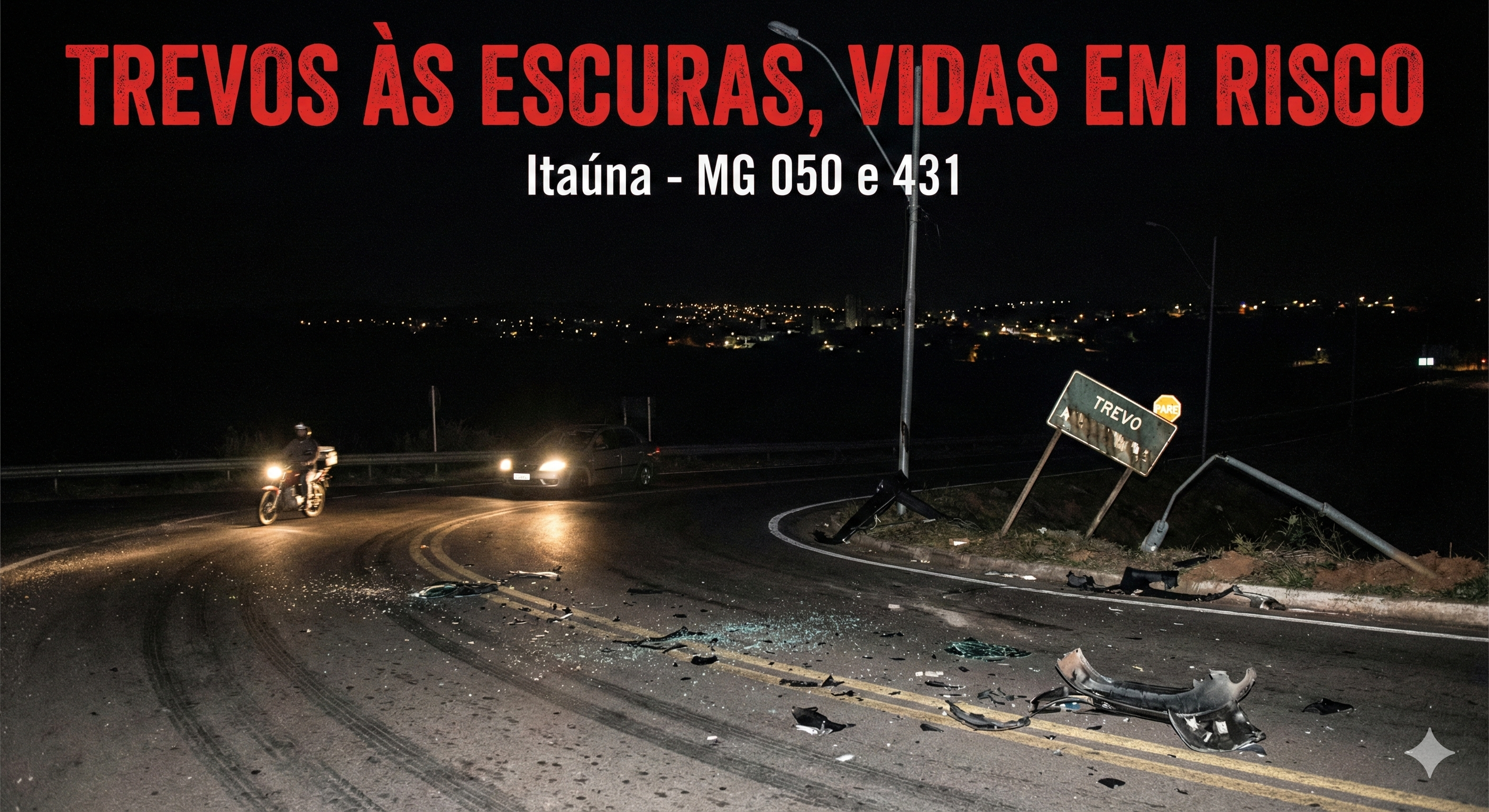 A cada acidente registrado nos trechos de acessos a Itaúna, uma sensação amarga se repete: a de que é preciso urgência para resolver o problema e que as tragédias já começam a ser tratadas como parte da rotina da cidade. Nos trevos da Santanense, Silva Jardim, Morro do Engenho e, mais recentemente, no trevo do Padre Eustáquio, o cair da tarde traz uma escuridão absoluta. Várias reportagens do Jornal S’Passo têm alertado sobre o abandono desses pontos que são fundamentais para o tráfego da cidade, registrando a crescente indignação de motoristas e pedestres que diariamente se arriscam nesses locais. Esta semana, diante do crescimento dos acidentes, o quadro chegou ao limite do aceitável.