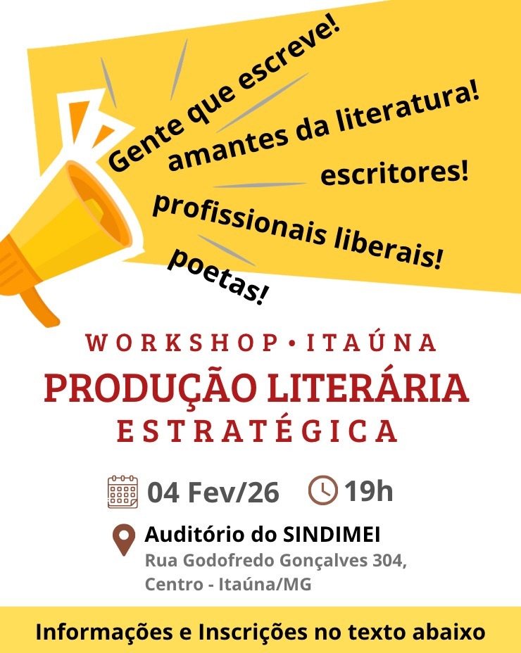 Itaúna recebe no próximo dia 4 de fevereiro, às 19h, um encontro voltado a escritores, leitores e interessados no universo editorial. A Donina Editora, em parceria com a Academia Itaunense de Letras, promove o workshop “Produção Literária Estratégica”, que será realizado no auditório do Sindimei, no Centro da cidade.